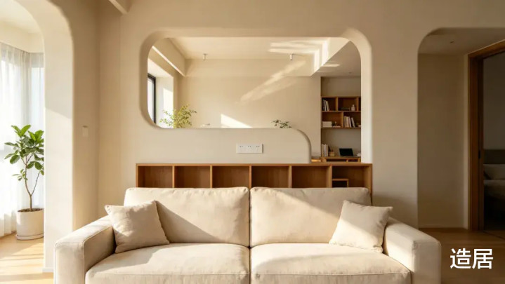 原来的沙发背景墙彻底解放,可做整面收纳架、展示墙,甚至打造简约壁炉,让客厅更有设计感。