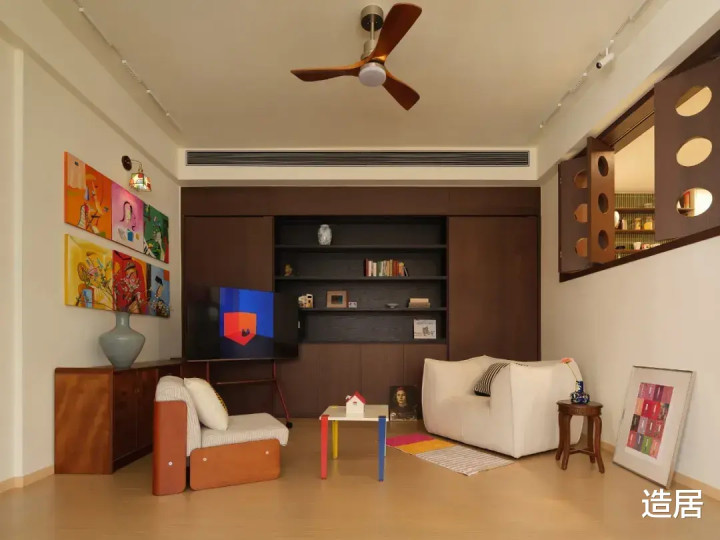 一房多用沙发背后可以隔出书房、学习区、休闲区、西厨区,不用额外砸墙改户型,就能让客厅多出一间 “隐形房间”,适配三口之家、亲子互动、居家办公等多种生活场景。