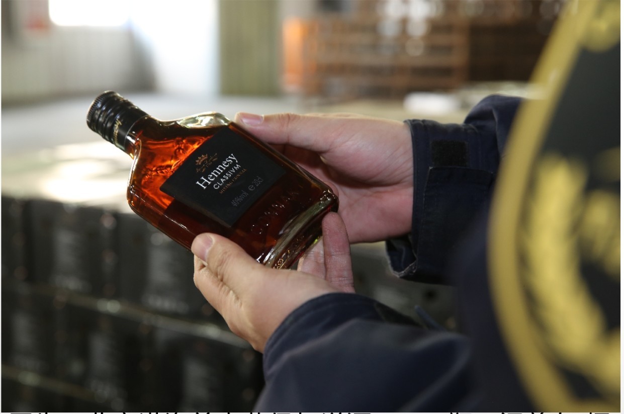 据海关的工作人员介绍,他们在查验时发现该批洋酒瓶身标注“Hennesy”、“GREEN LABIL”等标识,与在海关总署知识产权保护系统备案的轩尼诗(Hennessy)、尊尼获加(Green Label)等注册商标高度相似,当事人无法提供合法授权文件及有效货源证明,疑似为侵权货物,共计60720瓶。经与相关品牌权利人联系,确认该批洋酒为侵权商品。目前,海关已依法对该批货物实施扣留。
