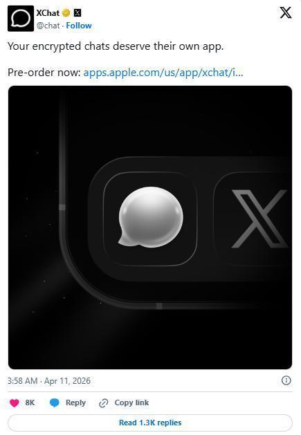 据此前报道,“XChat”的主页介绍道:该应用是专为对话打造的私密专注空间,可与X上的任何人聊天。无广告、无追踪,全程端到端加密。应用大小为175.8MB,支持iOS 26及以上系统,支持简体中文等超45种语言。