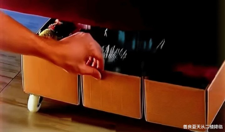 我家床底有十厘米左右的空隙,平时落灰不说,偶尔滚进去个拖鞋还得趴地上捞。我挑了几个大小一致的鞋盒,用双面胶粘成一排,又花几块钱买了四个万向轮粘在底部。